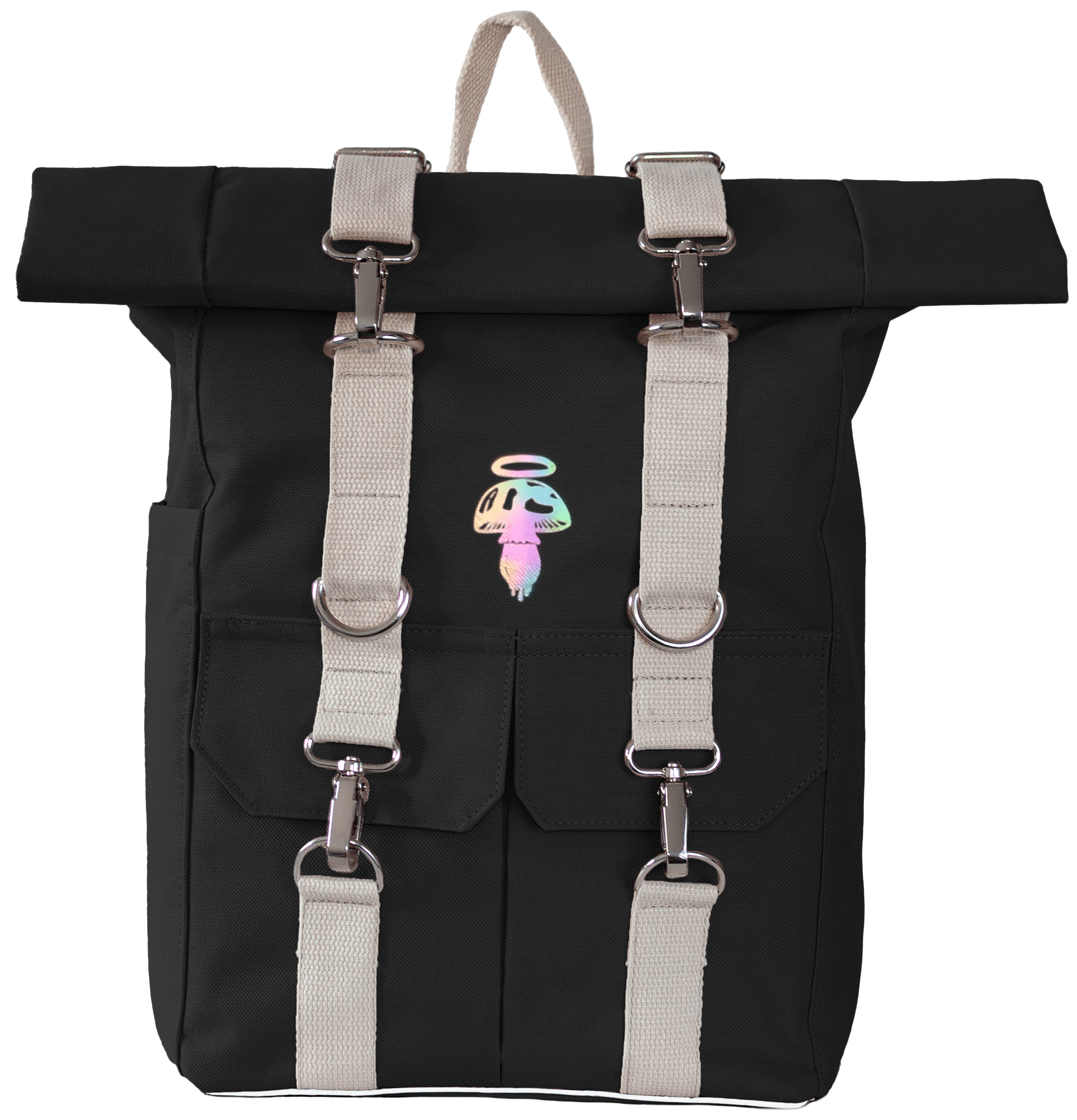 Plecak rolltop w klasycznej, głębokiej czerni to ponadczasowa propozycja dla osób, które lubią połączenie minimalizmu i charakteru. Kremowe taśmy z karabińczykami dodają mu wyrazistości, jednocześnie zachowując elegancki, uniwersalny styl. To praktyczny plecak miejski unisex, zaprojektowany tak, aby towarzyszyć Ci każdego dnia — niezależnie od tego, czy idziesz do pracy, na uczelnię czy w drogę.