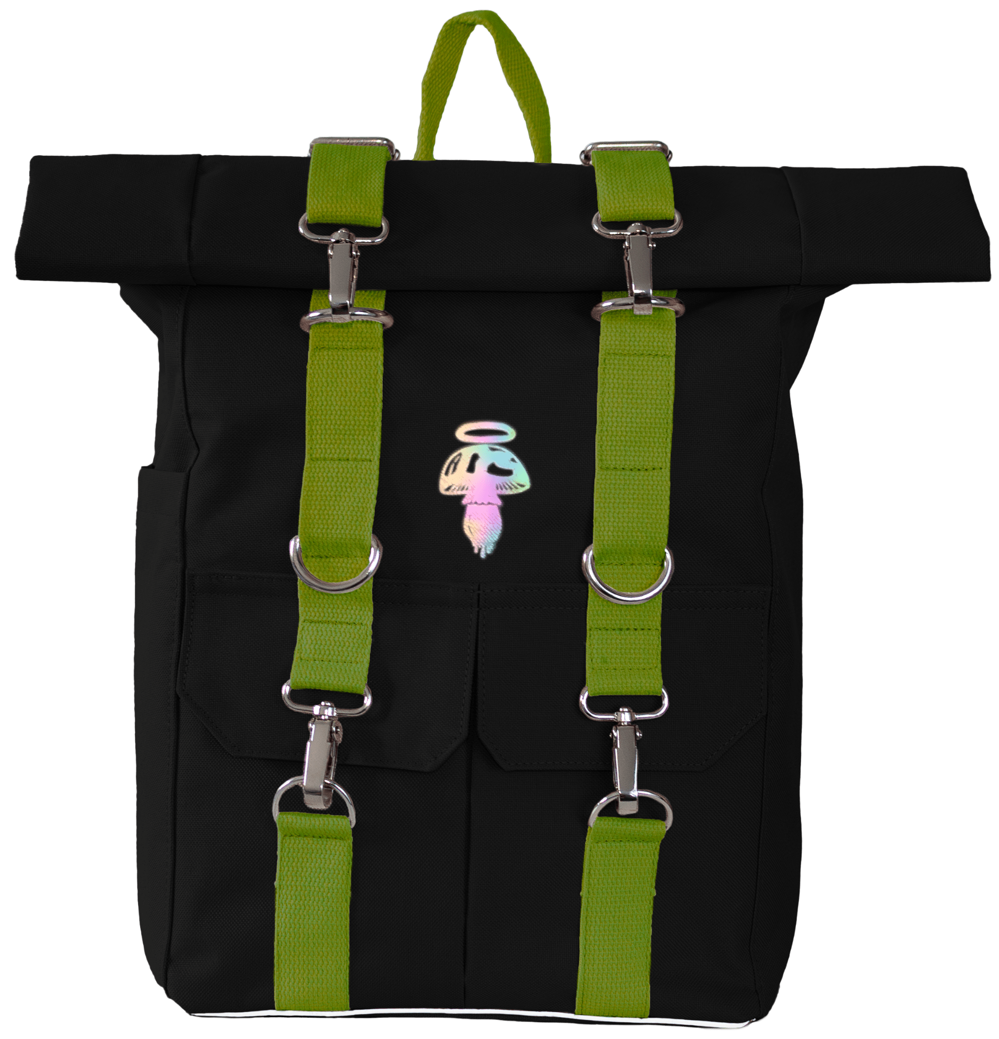 Plecak AYAHUASCA Roll Top zwijany na laptopa czarny z zielonymi taśmami